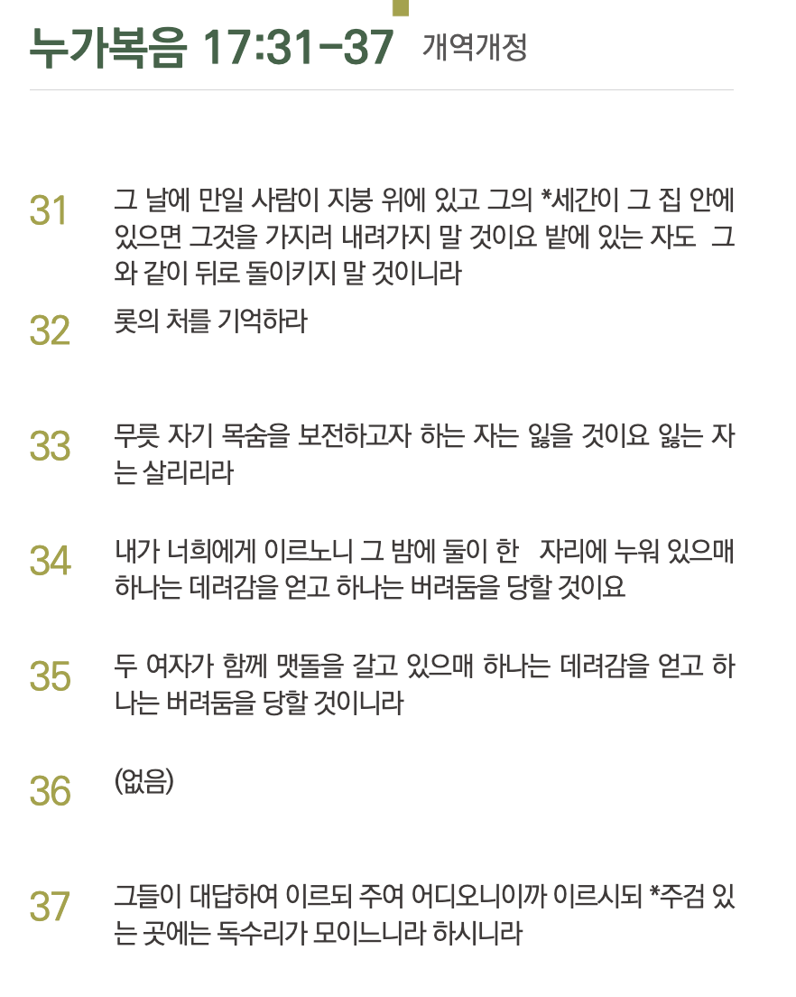 [QT] 누가복음 17장 31-37절 (2025년 9월 5일, 골방말씀)