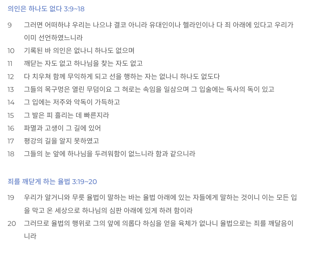 그 누구도 의롭다 칭함 받을 존재가 없습니다(10)
